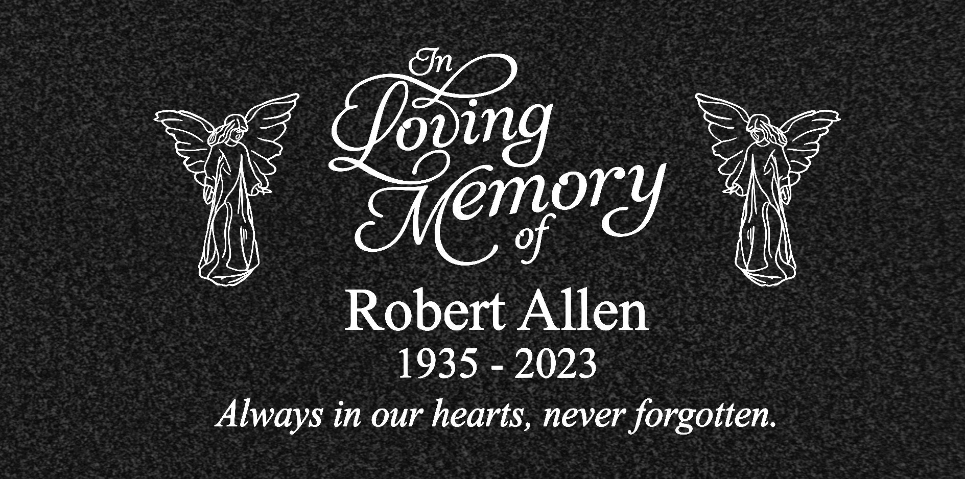 This flat granite grave marker features two peaceful angel motifs and a classic memorial layout, creating a simple and respectful tribute for a loved one. The polished top provides clear, long-lasting engraved names, dates, and an optional message, while the clean rectangular shape offers a timeless look that fits most cemetery settings. Designed as an affordable yet dignified flat marker, it delivers durable granite strength, weather resistance, and easy upkeep. Families can customize this flat granite memorial with personalized lettering and optional symbols to reflect faith, love, and lasting remembrance.
