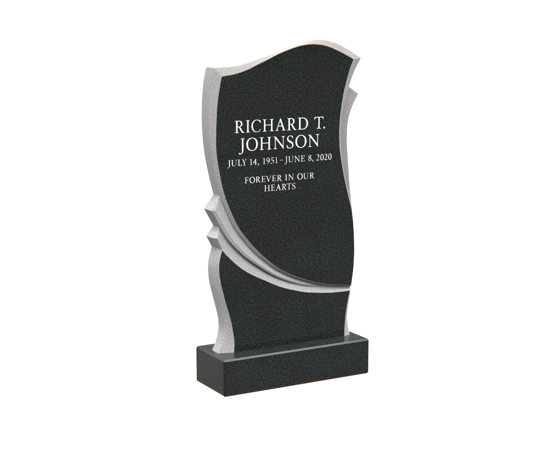 Sleek and modern granite headstone featuring a unique curved design, symbolizing elegance and grace. This durable and artistic memorial is a meaningful way to honor your loved one’s memory. Customization options available to personalize the tribute.